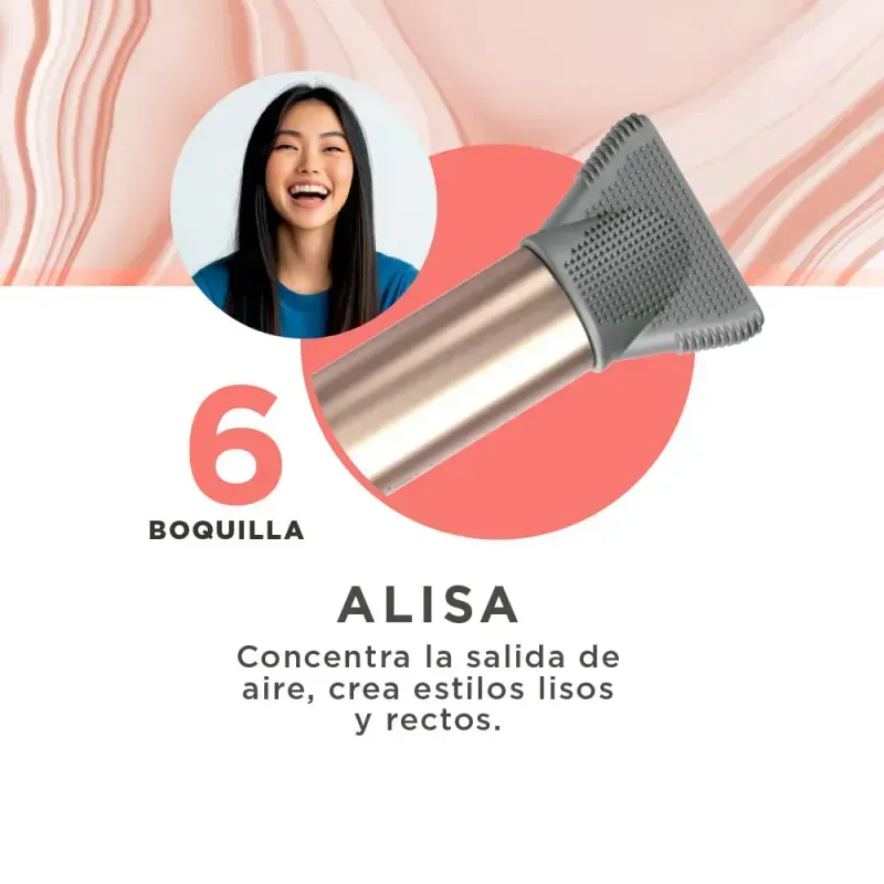 tecnología Coanda, atrae y moldea el cabello automáticamente, logrando rizos definidos, alisados perfectos o un volumen natural sin frizz. Incluye