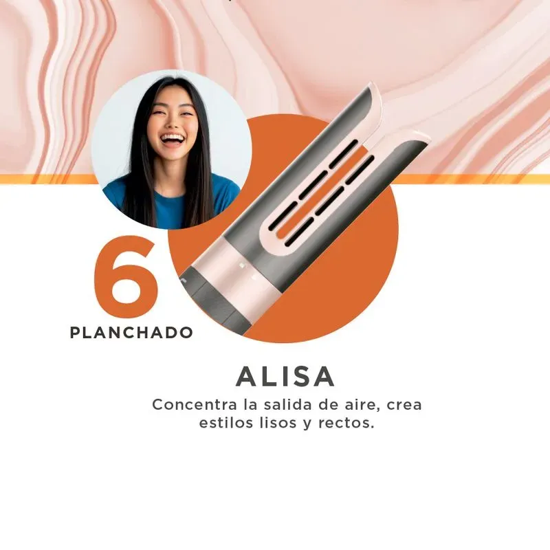 efecto Coanda, atrae y moldea el cabello automáticamente para obtener rizos definidos, alisados suaves o un modelado con volumen natural. Incluye